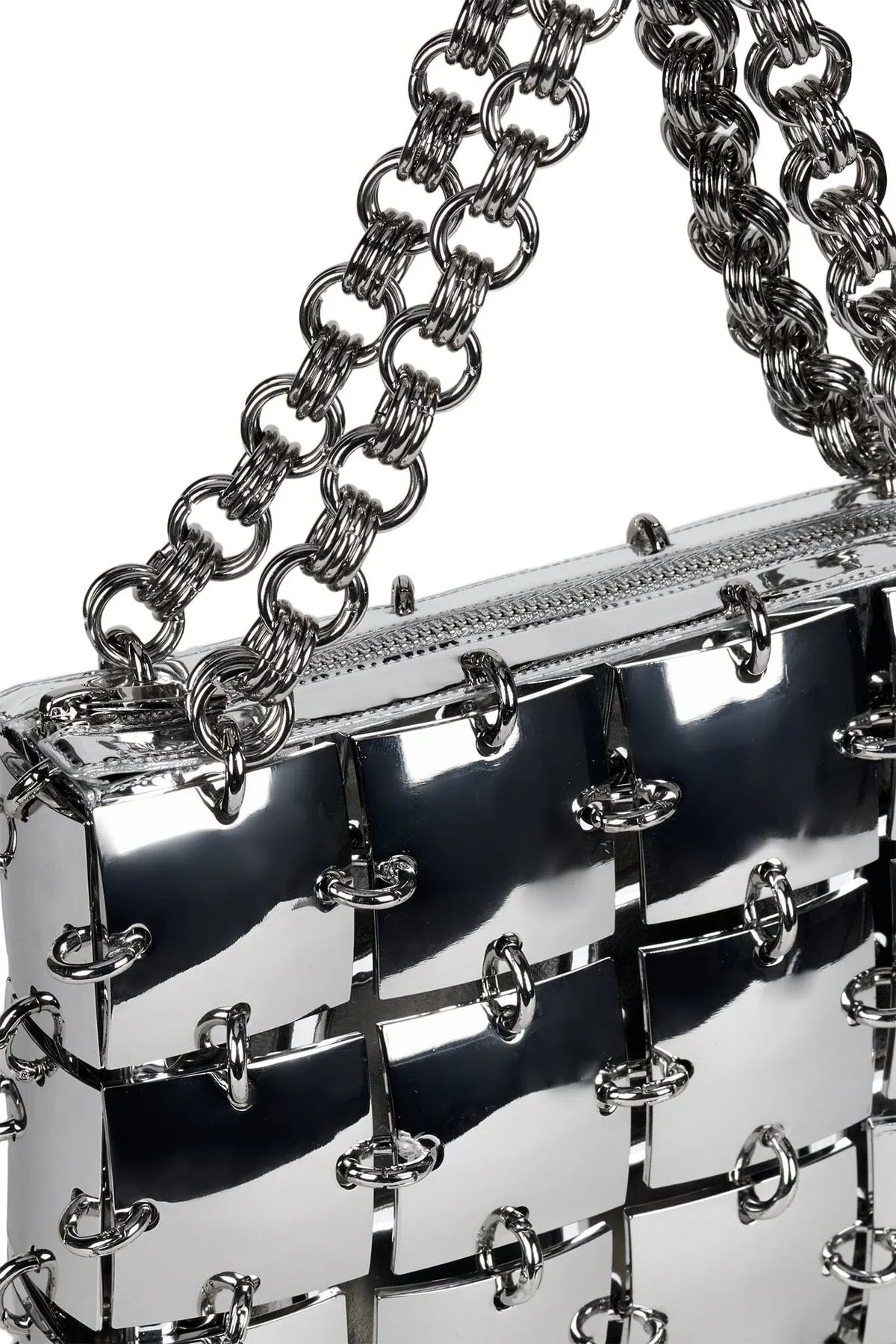 Chain-linked metal plated handbag